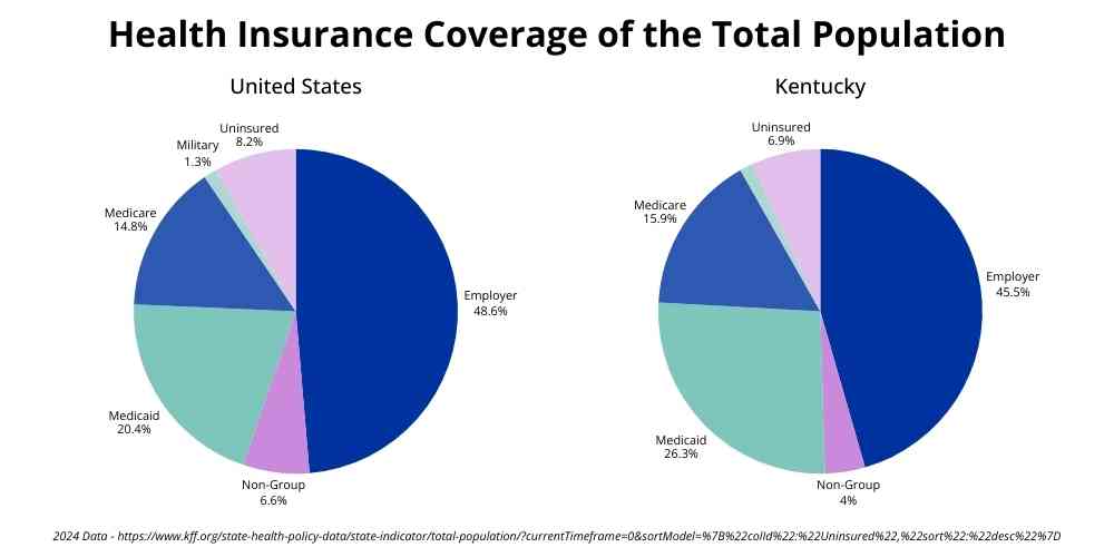 What is employer-sponsored coverage? The workplace is the most common source of health insurance in the United States. Nearly 49% of Americans, and more than 45% of Kentuckians, get their coverage through their work.